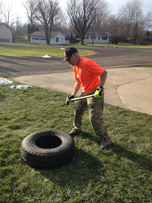 Round two consisted of a complex of deadlifts, pushups, and box jumps, followed by kettlebell squats, pullups, and leg raises. I then topped this off with 100 sledge hammer blows (50 right handed and 50 left), a few kettlebell presses, and another dozen pullups. (Totals: 54 deadlifts of 135lb , 72 gap pushups, 81 box jumps, 50 squats with 1 pood kettlebell, 62 dead hang pullups, and 130 leg raises.) Julie did a different workout, emphasizing kettlebell swings with 1, 1.25, 1.5, and 2 pood bells, for about 200 swings and 3 tons of weight. By the time dinner was ready, we both were well into calorie deficit for the day. I am pretty sure I will be sore in numerous places tomorrow, but since I only ate once today, I won't be fatter!
